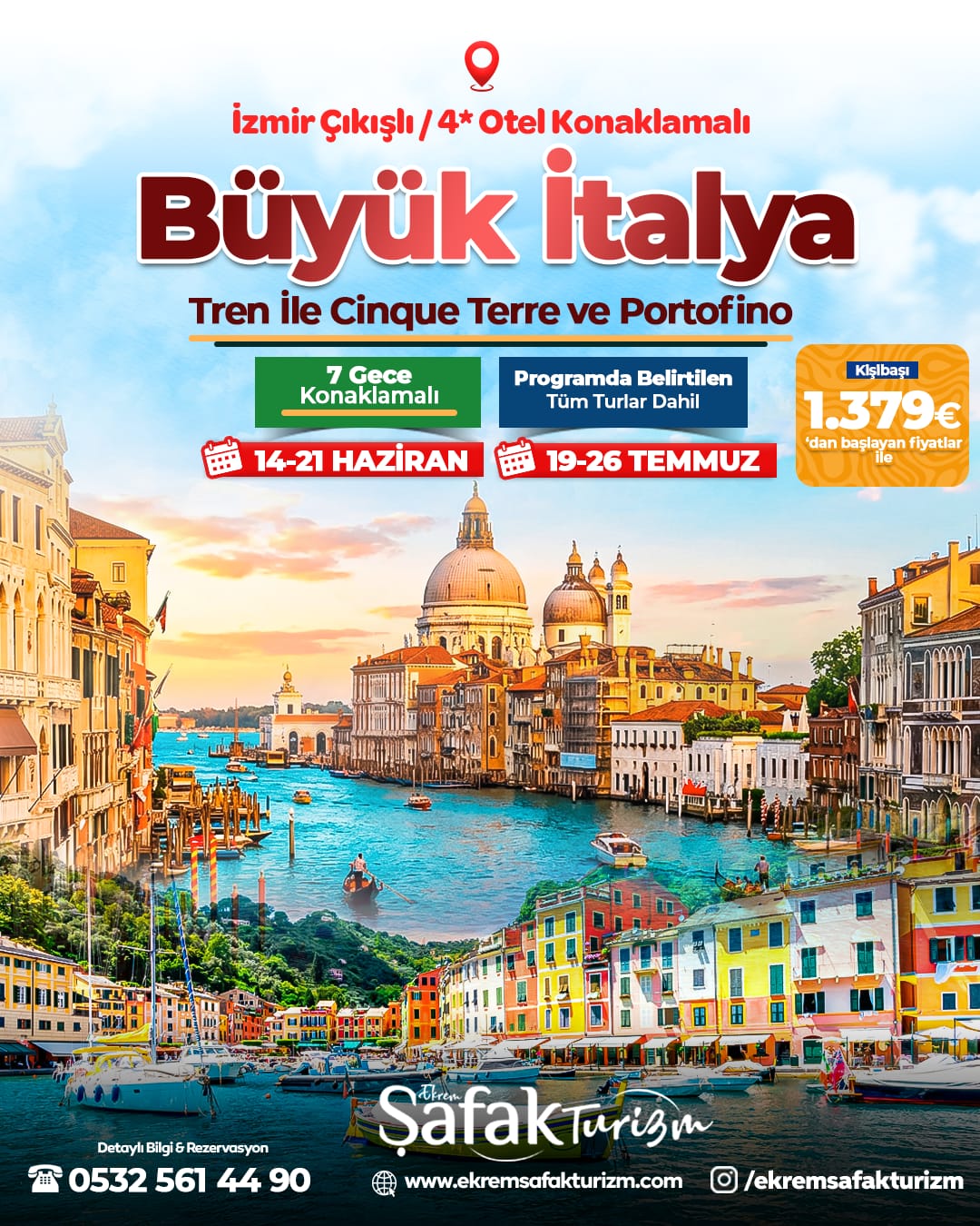 *Sun Express Hava Yolları ile İzmir-Venedik-İzmir Gidiş-Dönüş Uçak Biletleri ve Hava Limanı Vergileri *2 Gece 4* Venedik-Padova’daki Otelimizde Oda kahvaltı Konaklama (Tam Kahvaltı-Continental değil!) *1 Gece 4* Floransa’daki Otelimizde Oda kahvaltı Konaklama (Tam Kahvaltı-Continental değil!) *2 Gece 4* Roma’daki Otelimizde Oda kahvaltı Konaklama (Tam Kahvaltı-Continental değil!) *1 Gece 4* Pisa’daki Otelimizde Oda kahvaltı Konaklama (Tam Kahvaltı-Continental değil!) *1 Gece 4* Milan’daki Otelimizde Oda kahvaltı Konaklama (Tam Kahvaltı-Continental değil!) *Programda Açıkça Belirtilen Tüm Şehir Ve Kültür Turları *Fiyata Dahil ! Roma- Vatikan-Orvieto-Floransa-Siena-Verona-Pisa-Santa Margherita-Bologna-San Gimignano-Cinque Terre-Nemi-Castel Gandolfo-Portofino Gezileri *Fiyata Dahil ! Venedik Gezisi ve Vapuretto ve Kulaklık Ücreti *Fiyata Dahil ! Portofino Gezisi ve Tekne Ücreti *Fiyata Dahil ! Cinque Terre Gezisi ve Tren Biletleri *Fiyata Dahil ! Orvieto Gezisi ve Füniküler Çıkış Ücreti *Tüm Şehir Giriş Ücretleri, Turist Konaklama Vergileri *Tüm Otoban Check-Point (Ztl) Ve Otopark Ücretleri *Lüks Otobüs ile Ulaşım *Profesyonel Türkçe Rehberlik ve Yerel Rehberlik Hizmetleri
