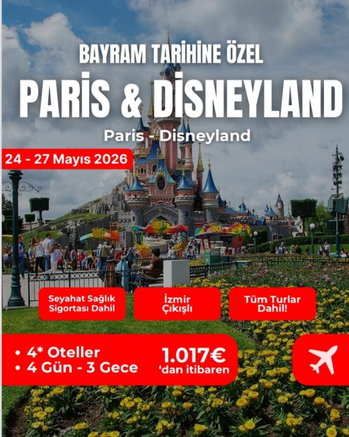 Sabah saat 07:00’da İzmir Adnan Menderes Hava Limanı Dış Hatlar Terminalin’de buluşarak pasaport ve bagaj işlemlerimizi tamamlayarak Sun Express Hava Yolları’na ait XQ 916 sefer sayılı uçağımız ile saat 10:00’da Aktarmasız (direkt) uçuşumuzu gerçekleştiriyor ve yerel saat ile 12:50‘de Paris’e ulaşıyoruz. Bizleri bekleyen aracımızdaki yerlerimizi alarak kenti gezmeye başlıyoruz. Sorbonne Üniversitesi’nin hemen önündeki meydanda yer alan ve orjinali Roma’da bulunan dünyaca ünlü Bilim adamı ve sanatçıların mezarlarının bulunduğu Pantheon Kilisesi’ni (J.J Rousseau, Madame Cury, Voltaire vb.) görerek başlıyoruz. Gezimizin devamında, Luxembourg Sarayı, Napolyon’un Mezarı (Hotel İnvalides), Opera Meydanı, Alexander Köprüsü, Saint Michel Mahallesi, Amerikan Kilisesi, Millet Meclisi, Orsay Müzesi, Trocadero Meydanı ve Zafer Takı’nı (Arc de Triumph) da gördükten sonra, Champs-Elysees’de rehberimizin yönlendirmeleriyle serbest zaman alıyoruz. Yeniden buluşmamızın ardından 3 gece konaklayacağımız otelimize yerleşiyoruz. Konaklama: 4* Hotel Mercure Paris Val de Fontenay v.b. ✈︎ Uçuş No: XQ 916 (Sun Express) - Kalkış: İzmir - Tarih: 24 Mayıs 2026 - Saat: 10:00 - Varış: Paris– Saat: 12:50