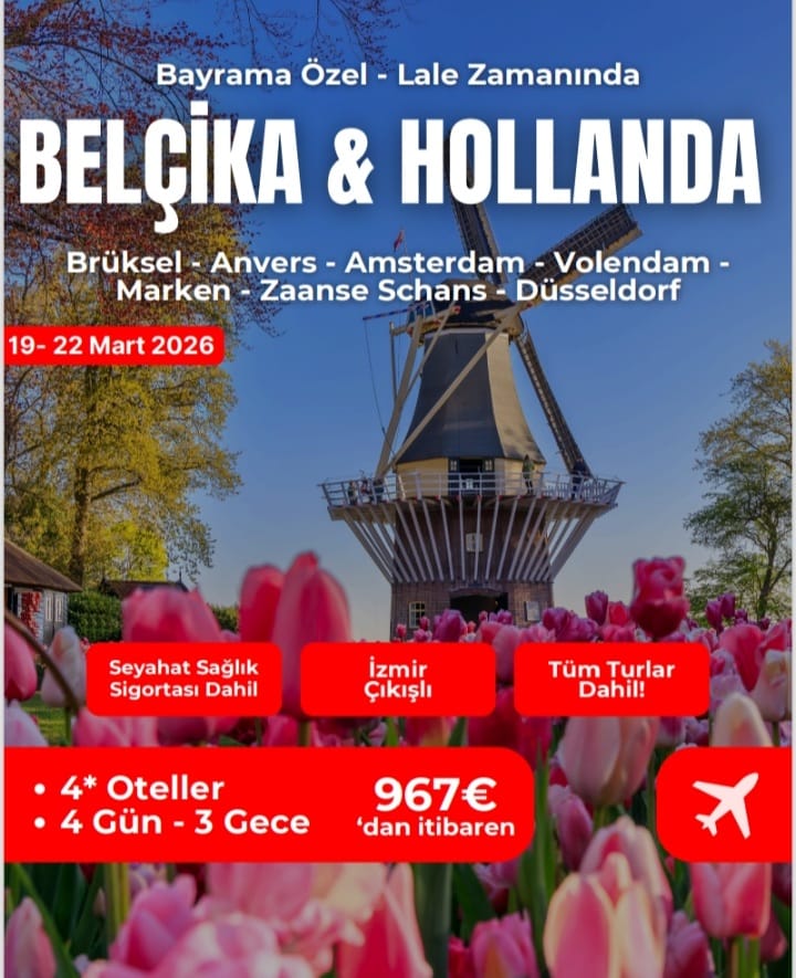 Amsterdam’daki otelimizdeki kahvaltımızın ardından; kanalları, tarihi evleri, yel değirmenleri ile Hollanda’nın geleneksel yaşamını yansıtan Zaanse Schans’a hareket ediyoruz. Özellikle yel değirmenleri önünde yer alan dekoratif lale düzenlemeleri, bölgeye bahar döneminde renkli bir atmosfer katmaktadır. Atölyeleri ile adeta bir açık hava müzesini andıran bu kasabada gezip serbest zamanımızı değerlendirdikten sonra, Hollanda’nın balıkçılığı ve Takunya yapımı ile ünlü bir diğer güzel kasabası olan liman çevresi ve sokaklarda mevsimlik çiçek süslemelerini görebileceğimiz Volendam’a geçiyoruz. Varışımızın ardından şirin hediyelik dükkanlarını görüyoruz. Fotoğraf çekimi, alışveriş ve kahve keyfi yapmak isteyen misafirlerimizle birlikte bir mola veriyoruz. Dileyen misafirlerimizle bu süre içerisinde, kökeni 16. yüzyıl Osmanlı saraylarına uzanan ve Avrupalı elçiler sayesinde Hollanda’nın simgesi hâline gelen lalenin hikâyesini yansıtan Çiçek Festivali Alanlarını görme imkânı buluyoruz. Serbest zamanımızın ardından başkent merkezine dönüyor ve Kanallar Turumuzu (fiyata dahil) gerçekleştirmek üzere limana doğru geçiyoruz. “Kuzeyin Venedik’i” olarak adlandırılan Amsterdam Kanallar boyunca, şehrin büyüleyici güzelliğini keşfediyoruz. UNESCO Dünya Mirası Listesi’nde yer alan asırlık kanallardaki yolculuğumuzda çok güzel fotoğraflar çekme fırsatınız olacak. Turumuz esnasında Anne Frank Evi’nin bulunduğu cadde üzerindeki Protestan Kalvinizm Kilisesi Westerkerk, Merkez Tren İstasyonu ve kentin tarihi binalarını göreceğimiz ve halkın yaşam tarzını gözlemleyebileceğimiz turumuzun bitiminde şehir merkezinde yemek molamızı veriyor ardından otelimize dönüyoruz. Konaklama: 4* NH Amsterdam Zuid Hotel v.b